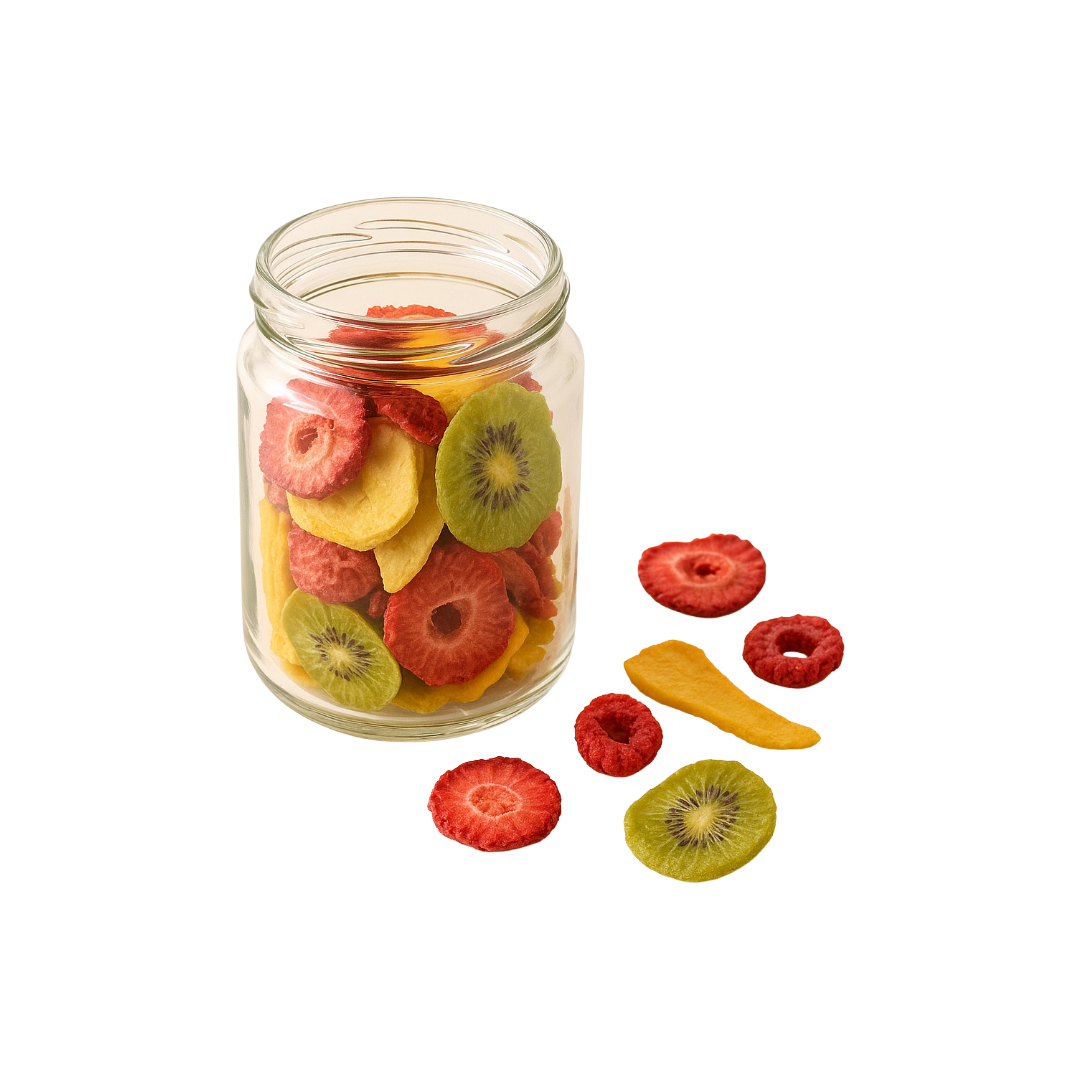 Fructele liofilizate sunt partenerul perfect pentru un stil de viață activ. Ușoare, bogate în fibre și perfect porționate, îți oferă un boost rapid de energie la birou, la sală sau în drumeții.